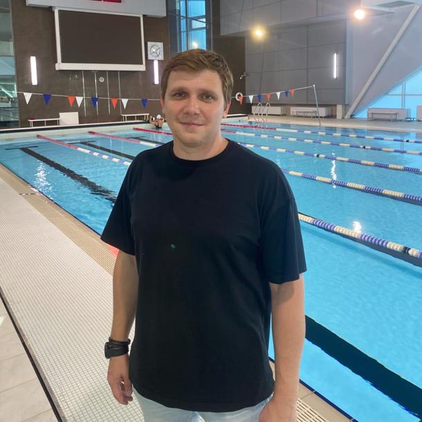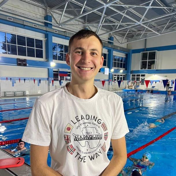 КМС по плаванию. Призер городских соревнований и чемпион областных. Обучается в ГУОР на тренера-преподавателя. Имеет опыт работы с детьми и взрослыми. Прошел курсы по грудничковому плаванию и ведет занятия по аква-аэробике. Работает со страхами воды у детей и взрослых.