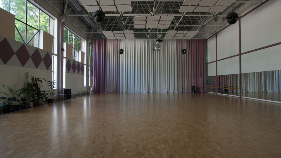 - для тренировок оборудованы просторные танцевальные классы с большими зеркалами и уникальными интерьерами;