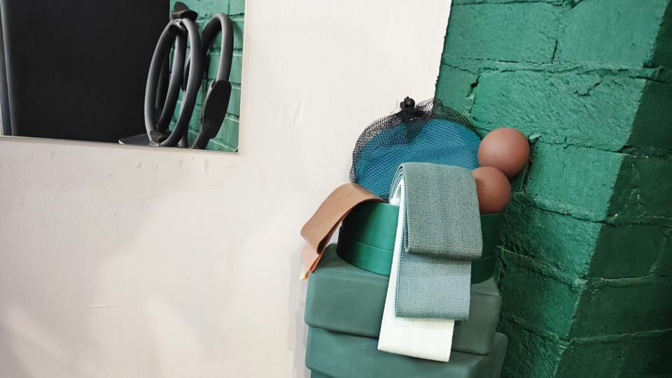 В студии установлено профессиональное оборудование для пилатеса: реформеры, бочка, стул, спайн корректор; есть малое оборудование для пилатеса: мячи, цилиндры, кольца, ленты; а также инвентарь для функционального тренинга — гантели, гири, петли TRX, амортизаторы, турник, брусья и др.