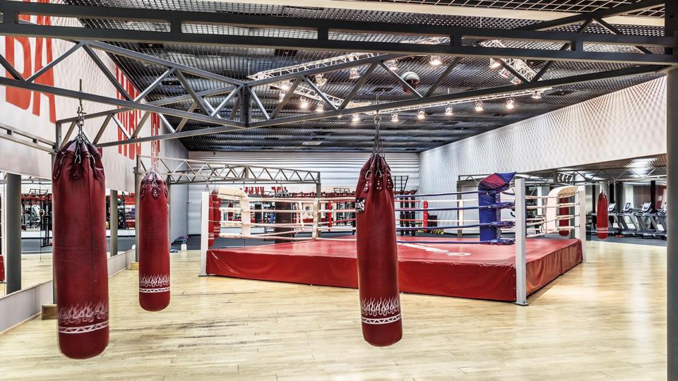 - специально оборудованная зона ринга и зал боевых искусств;