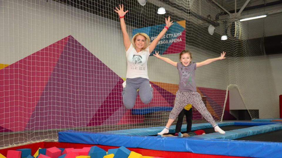 В развлекательно-активной зоне работают бесплатный аниматор и дежурный инструктор, которые сделают посещение интересным и безопасным. А в фотостудии вы сможете заказать профессиональные фото вашего первого сальто.