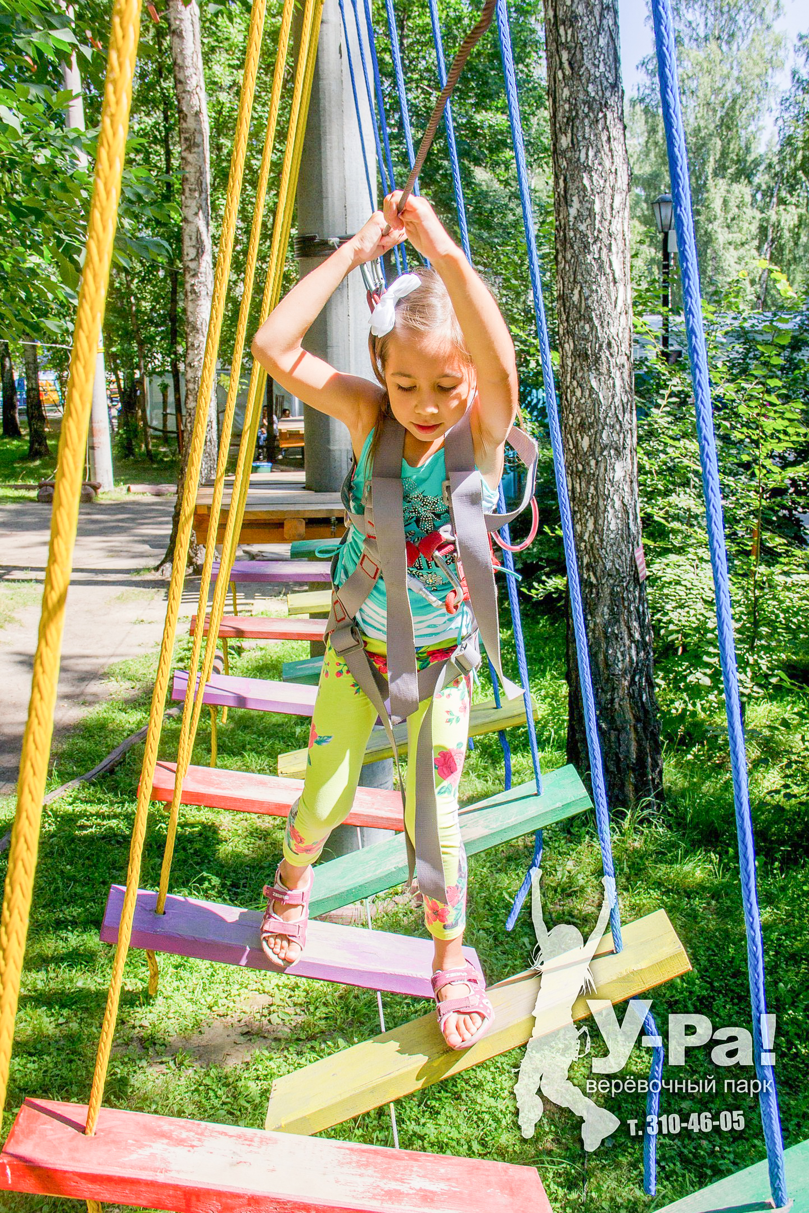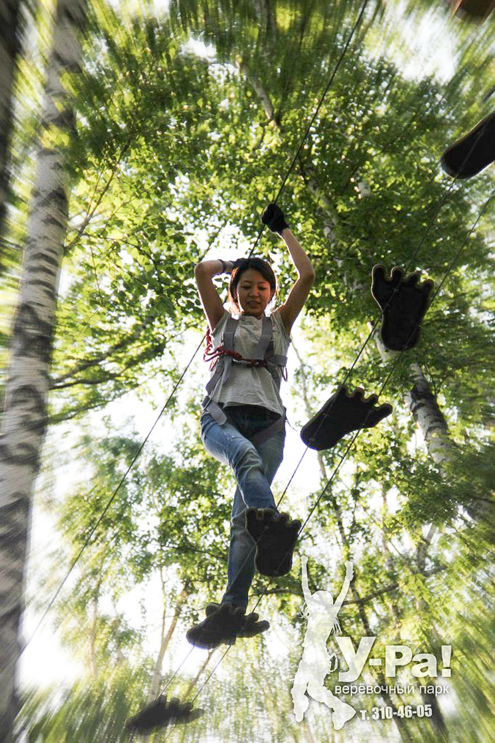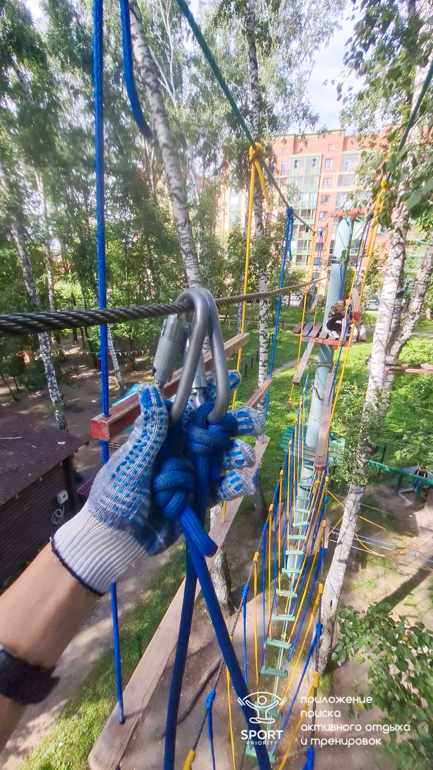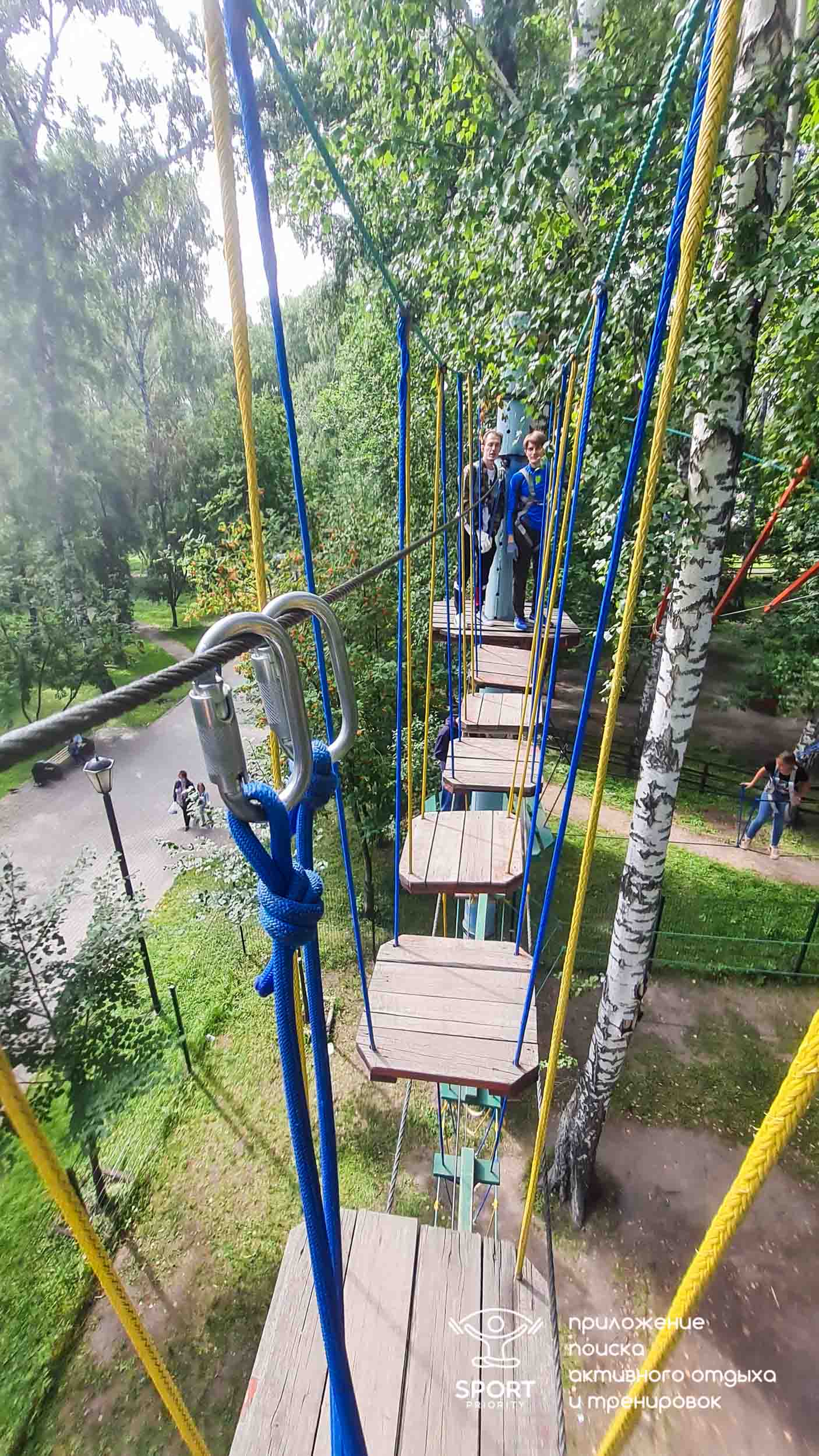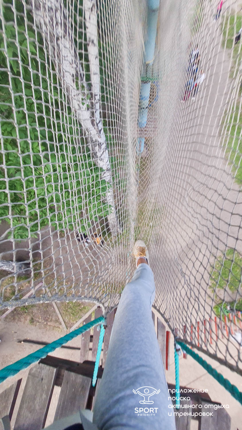 Этапы парка высотой от 2-х до 8 метров представляют собой разнообразные переправы от площадки к площадке: «тарзанки», верёвочные и деревянные мостики, лестницы, сети и многое другое.