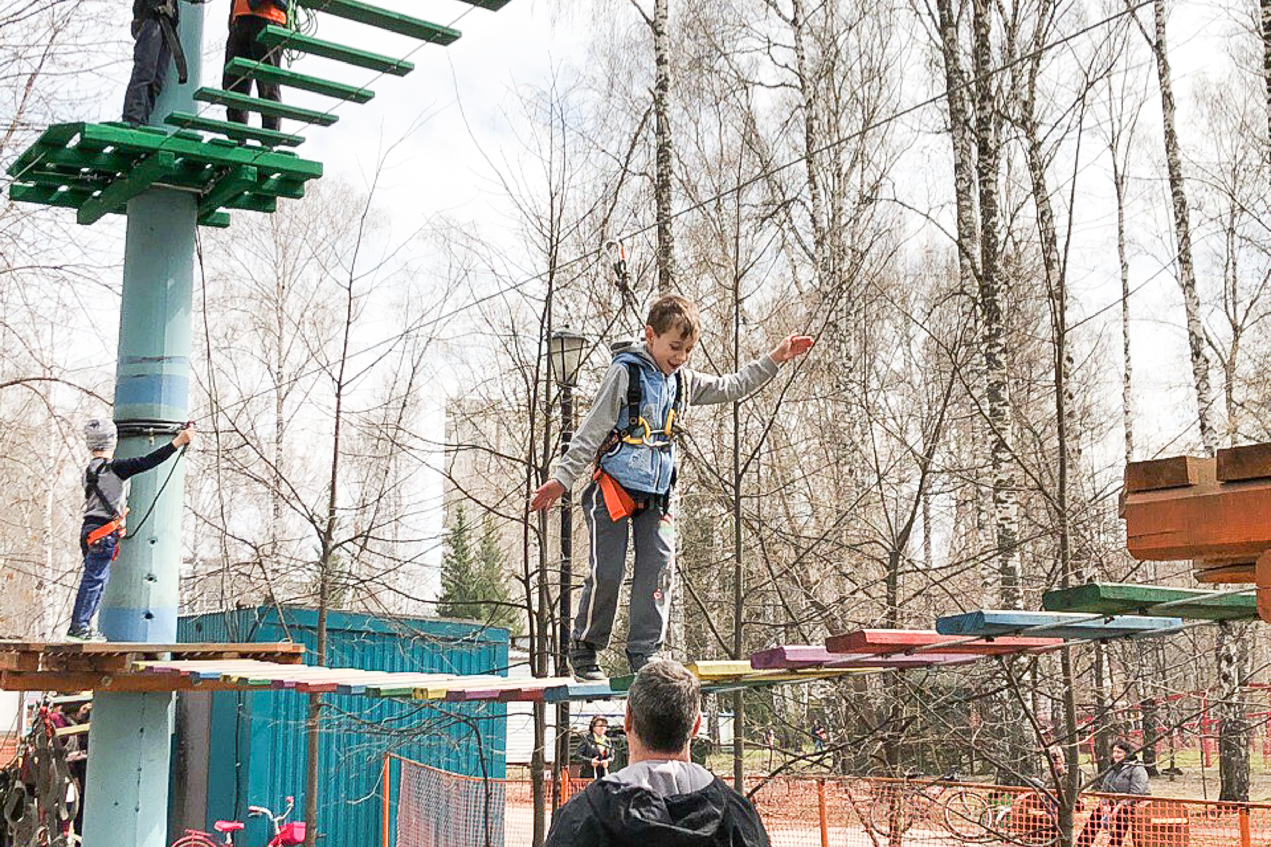 - Нижняя трасса - рост от 115 см. Находится на высоте 2-3 метров. Подходит для детей. Стоимость: 200 рублей.