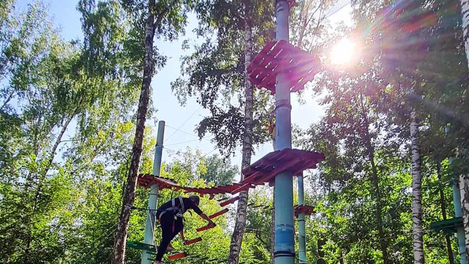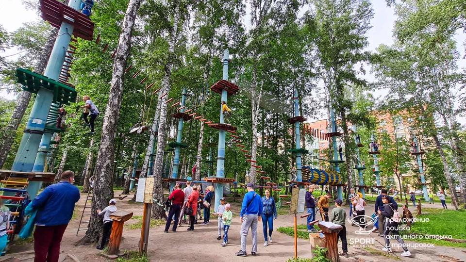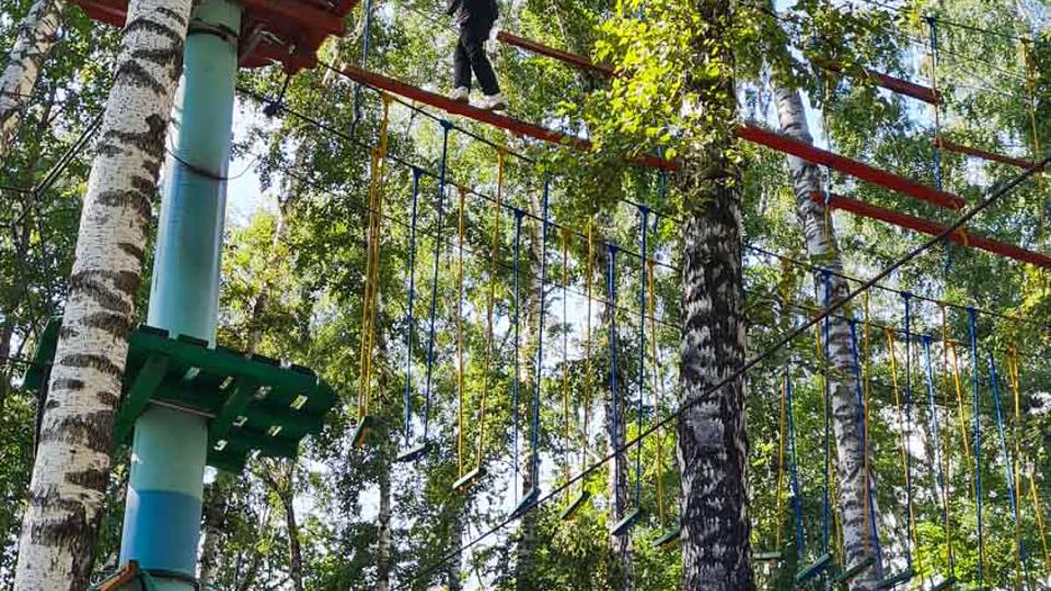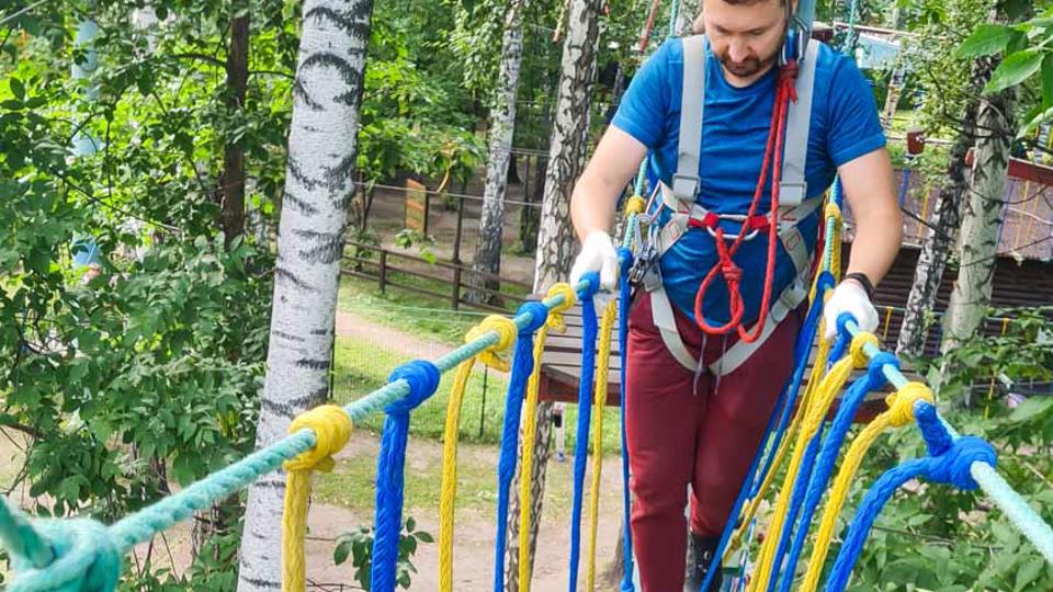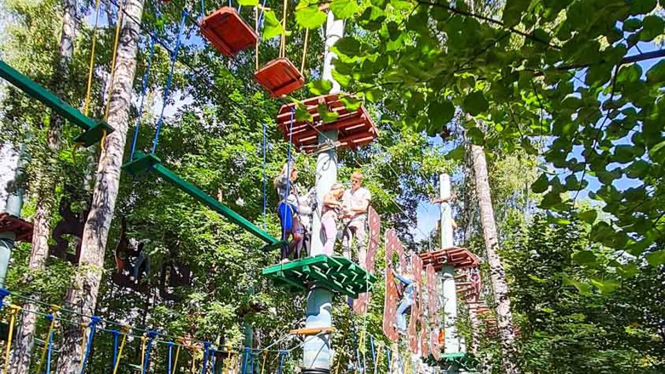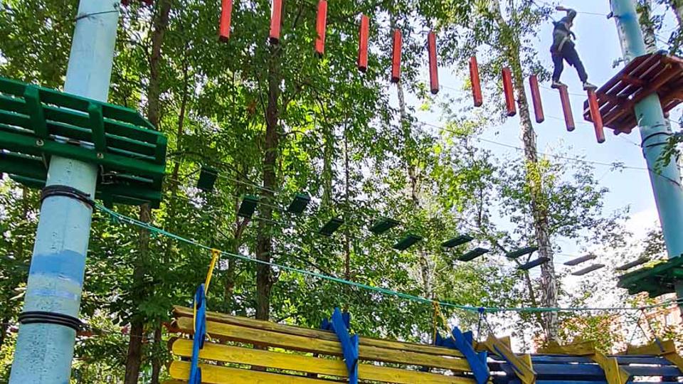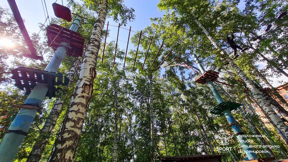 Этапы парка высотой от 2-х до 8 метров представляют собой разнообразные переправы от площадки к площадке: «тарзанки», верёвочные и деревянные мостики, лестницы, сети и многое другое.