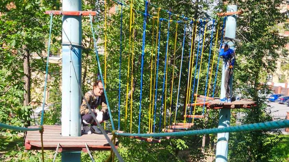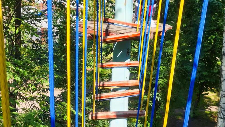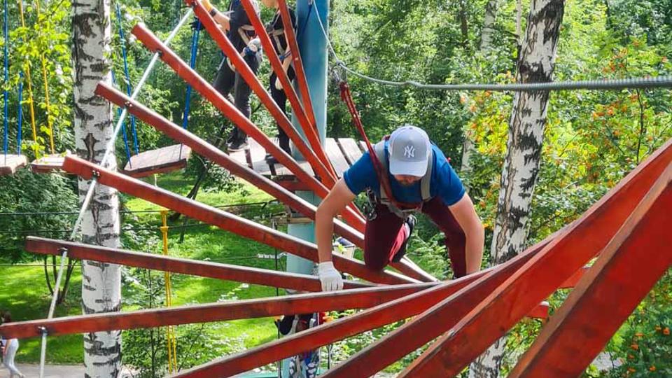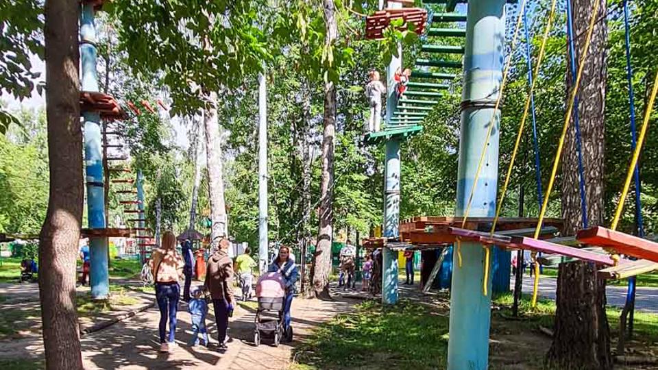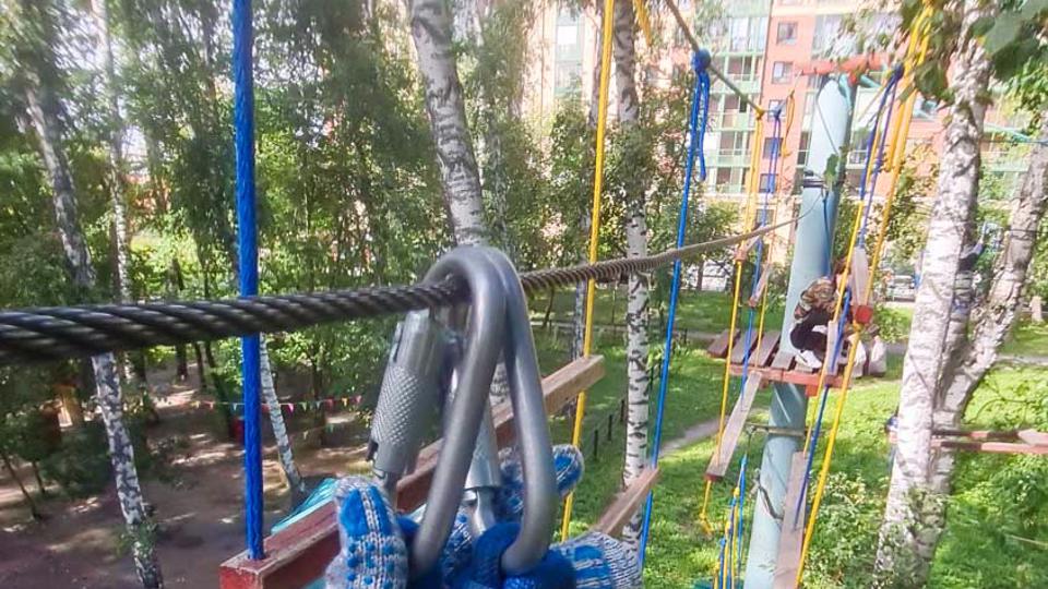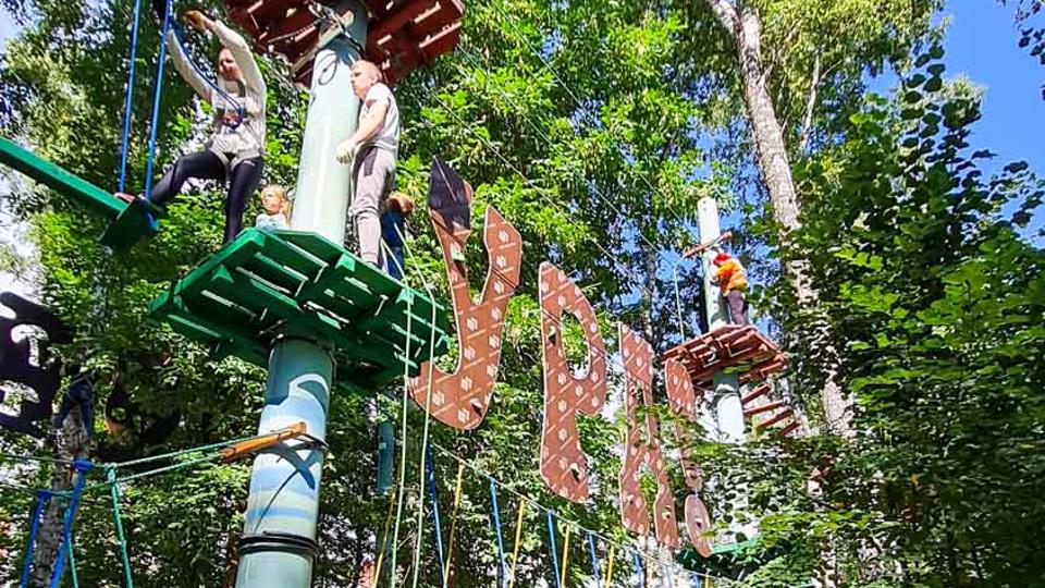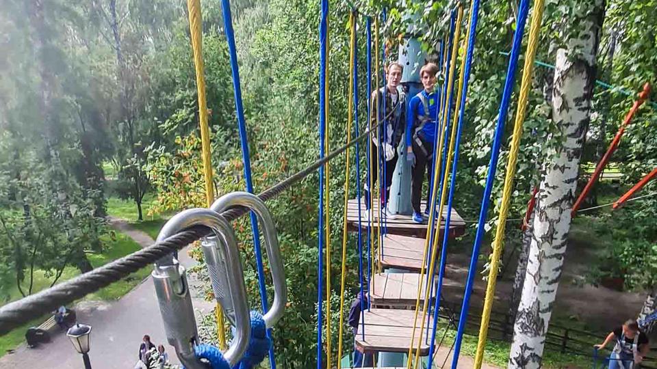 Этапы парка высотой от 2-х до 8 метров представляют собой разнообразные переправы от площадки к площадке: «тарзанки», верёвочные и деревянные мостики, лестницы, сети и многое другое.